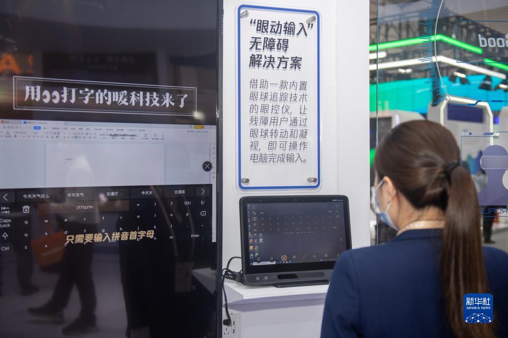 11月10日,觀眾在騰訊公司展臺體驗“眼動輸入”無障礙解決方案。