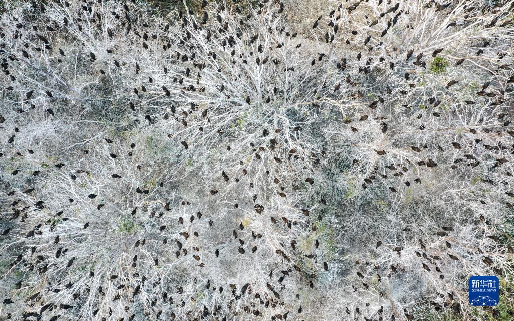 鹽城濕地珍禽國家級自然保護區里的鸕鶿(11月7日攝,無人機照片)。
