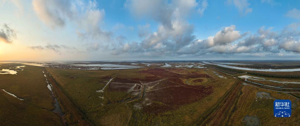鹽城濕地珍禽國家級自然保護區景色(11月8日攝,無人機照片)。