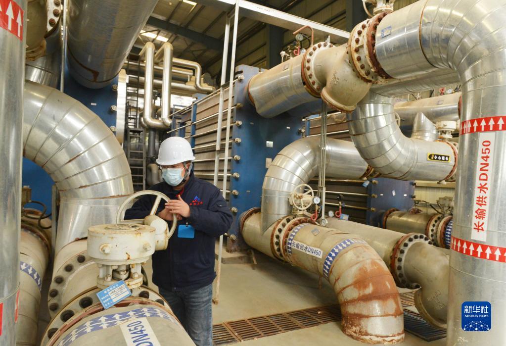 11月10日,在石家莊市一家供熱企業,工作人員在運行車間內調控設備。