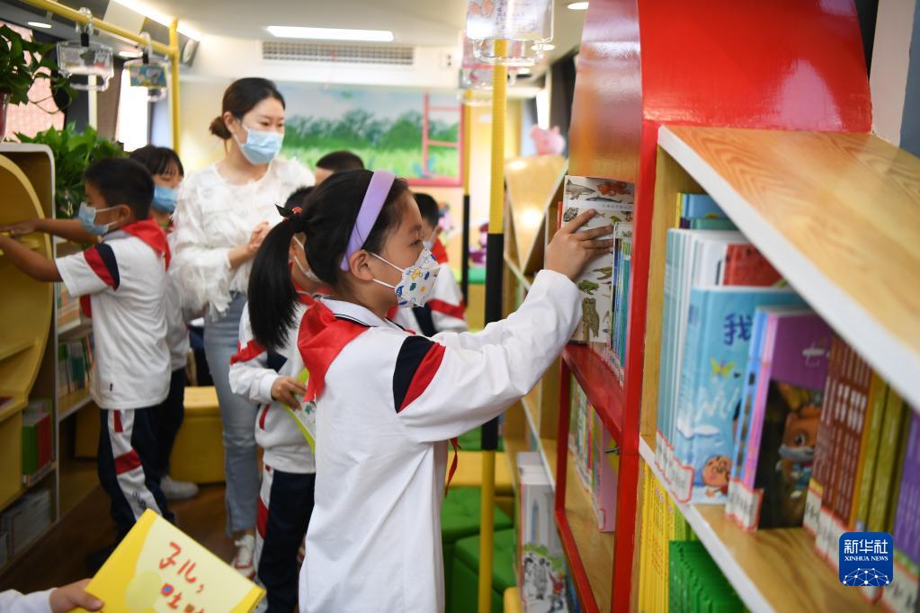 近日,長沙市青園友誼小學的巴士圖書館開館,吸引學生們前來閱讀、體驗。巴士圖書館由一臺廢棄巴士改造而成,目前共藏書4000多冊。