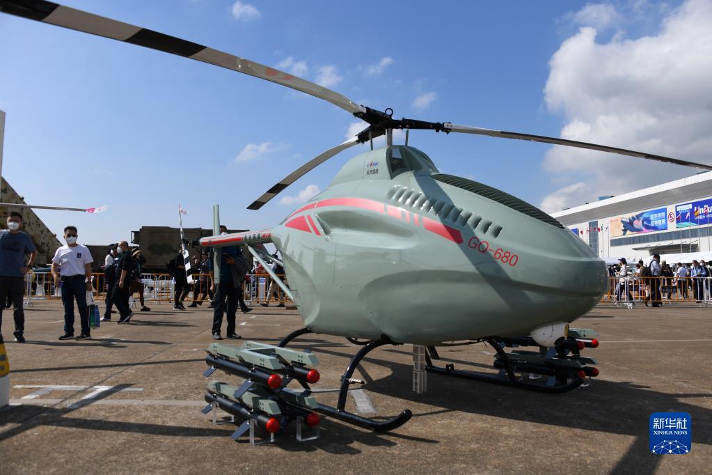 這是航展上展出的GQ-680無人直升機(11月10日攝)。
