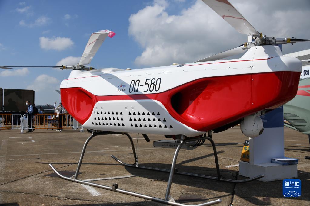這是航展上展出的GQ-580無人直升機(11月10日攝)。