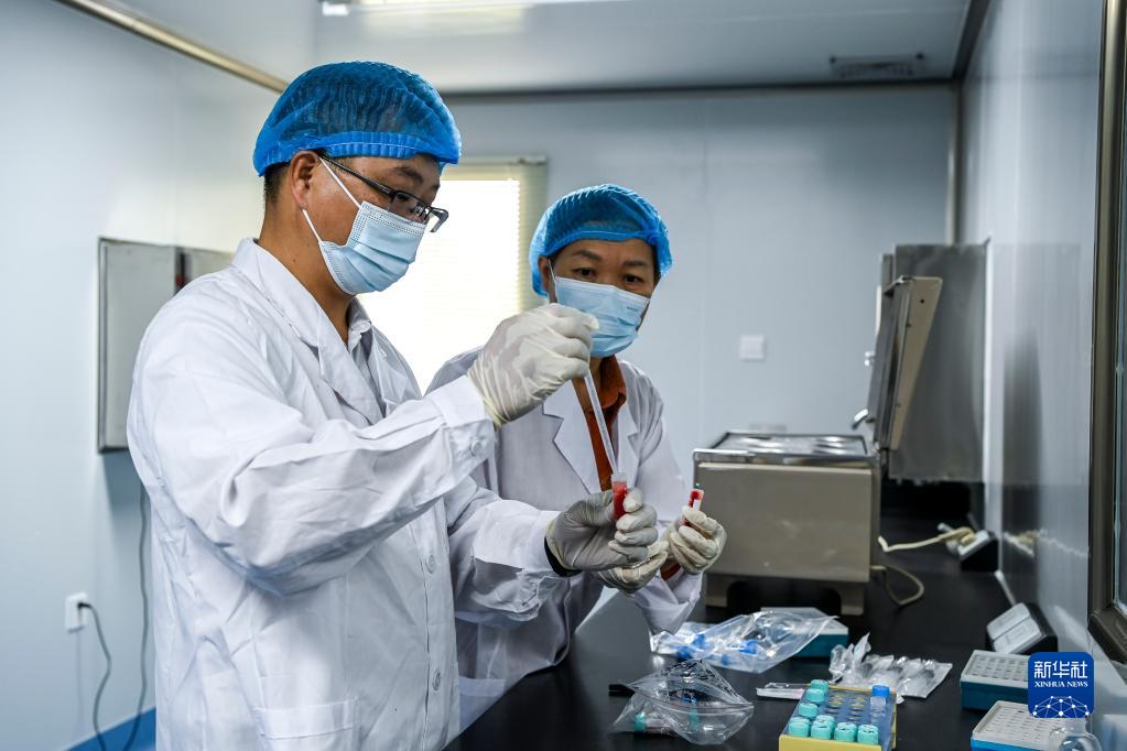 11月10日,在興業縣農業農村局實驗室,科技特派員對采集的禽類血液樣本進行化驗。