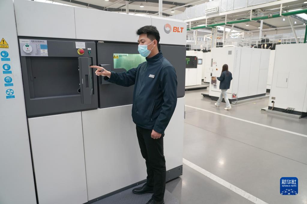 11月8日,工人在位于西安高新區的鉑力特金屬增材制造智能工廠項目車間內操作3D打印設備。