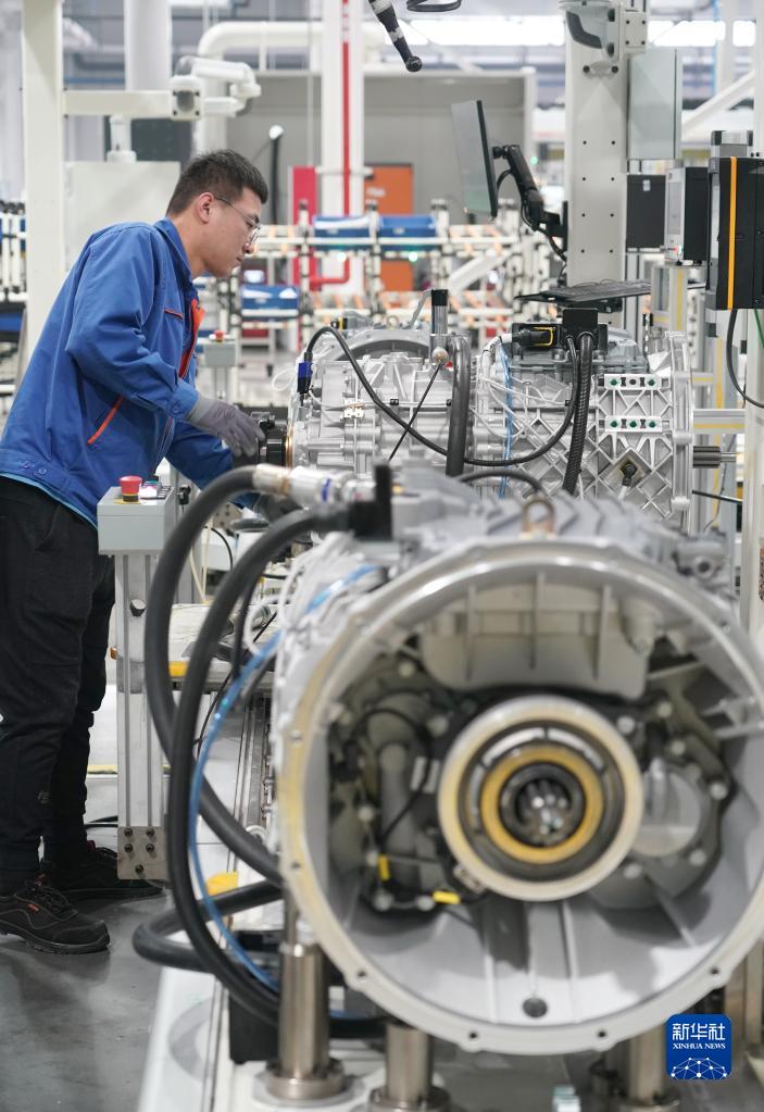 11月9日,工人在位于西安高新區的法士特高智新工廠項目車間內檢測變速器成品。
