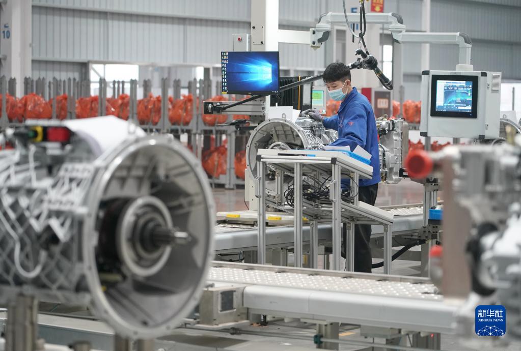 11月9日,工人在位于西安高新區的法士特高智新工廠項目車間內檢測變速器成品。