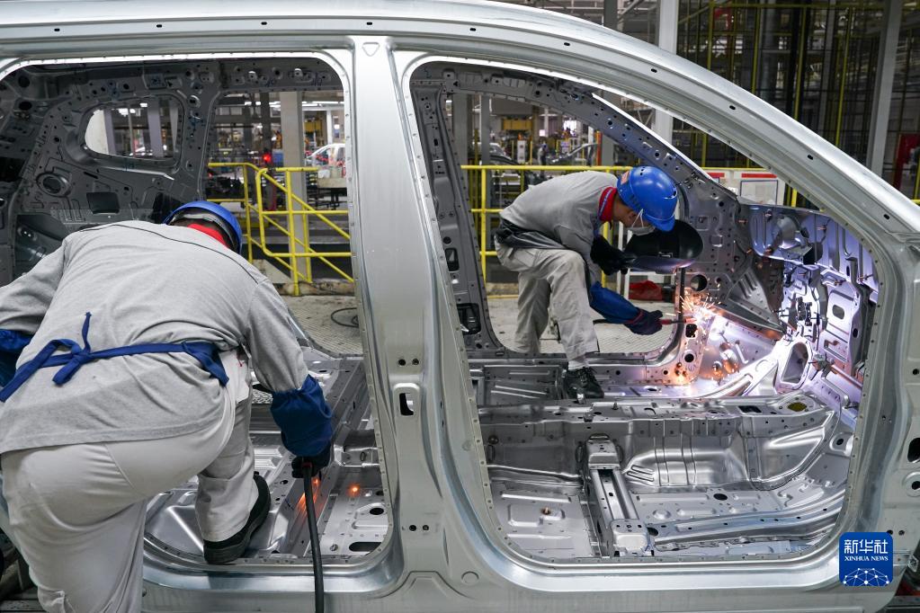 11月9日,工人在位于安徽省蕪湖市的奇瑞汽車智能網聯超級一工廠生產線上工作。