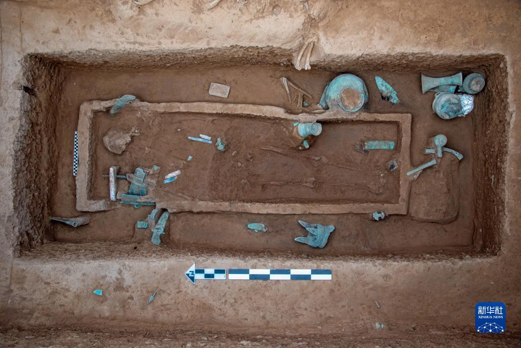 陶家營遺址M12墓葬發掘出土情況(資料照片)。