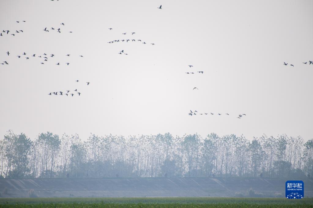 這是11月10日在湖南西洞庭湖濕地上空拍攝的候鳥。