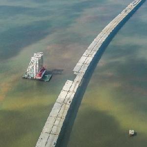 當日,深中通道海上非通航孔橋混凝土箱梁全部架設完成。深中通道是集“橋、島、隧、水下互通”于一體的跨海集群工程,全長約24公里,其中橋梁工程長約17公里。