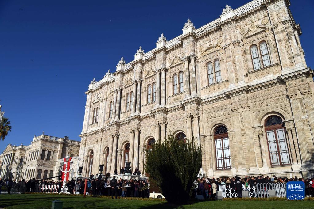 11月10日,人們在土耳其伊斯坦布爾的多爾瑪巴赫切宮排隊參加紀念國父凱末爾逝世84周年的活動。