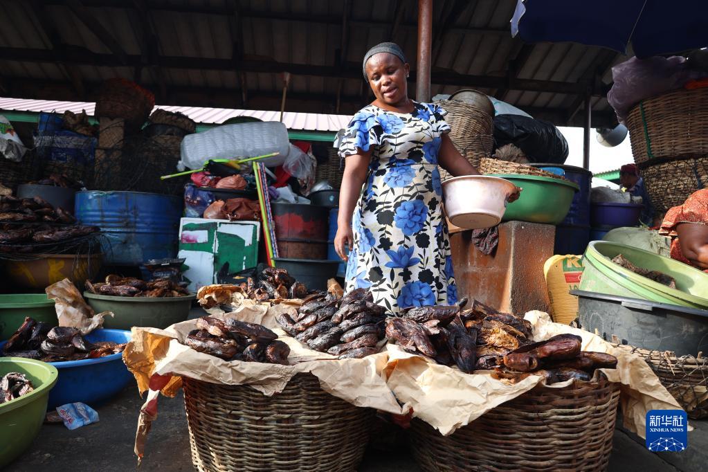 11月10日,商販在加納首都阿克拉的市場上售賣貨物。