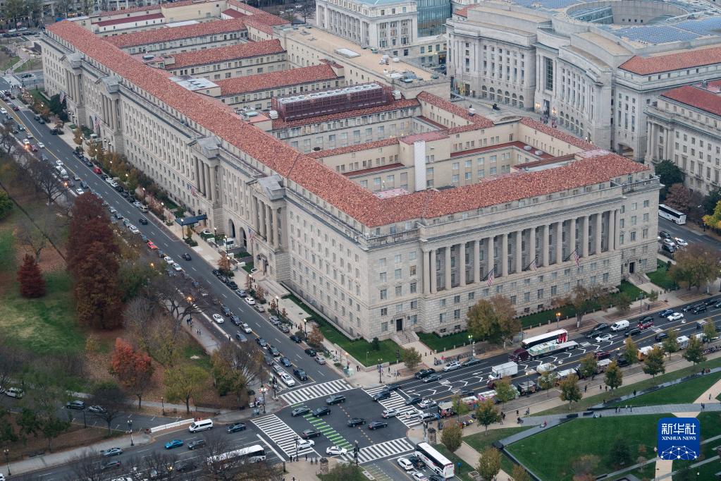 這是11月10日在美國首都華盛頓拍攝的晚高峰車流。