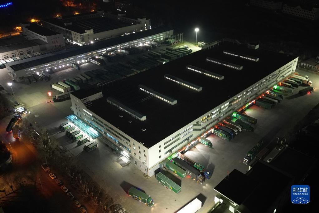 這是11月10日在中國郵政哈爾濱郵區中心局郵件處理中心拍攝的??康目爝f運輸車(無人機照片)。
