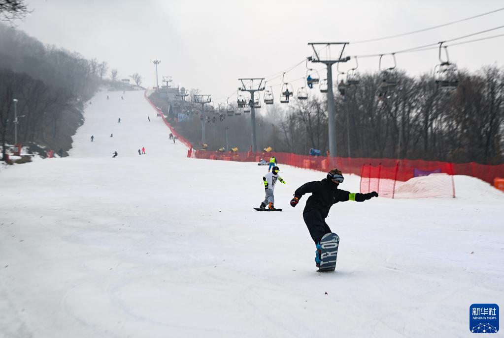11月11日,滑雪愛好者在廟香山滑雪場滑雪。