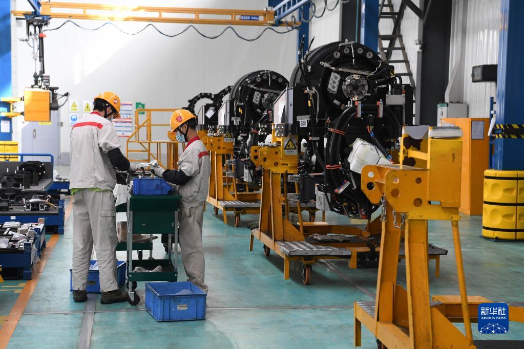 11月9日,中車浦鎮阿爾斯通運輸系統有限公司工人在軌道交通車輛生產線上工作。