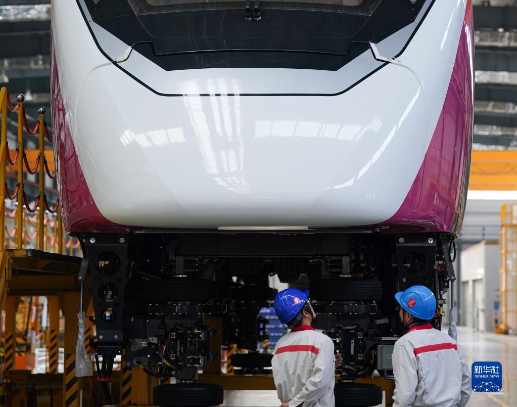 11月9日,中車浦鎮阿爾斯通運輸系統有限公司工人在軌道交通車輛生產線上工作。