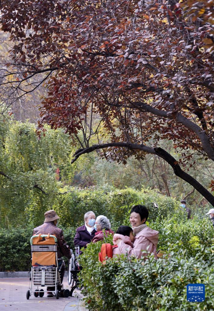 11月10日,北京市豐臺區方莊街道芳城園一區的居民在改造后的社區公園內休閑。