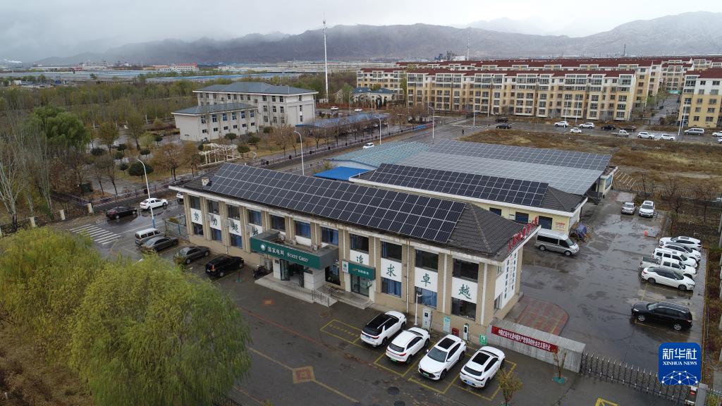 經過“零碳化”改造后的國網寧夏電力石嘴山供電公司長勝供電所全景(11月11日攝,無人機照片)。