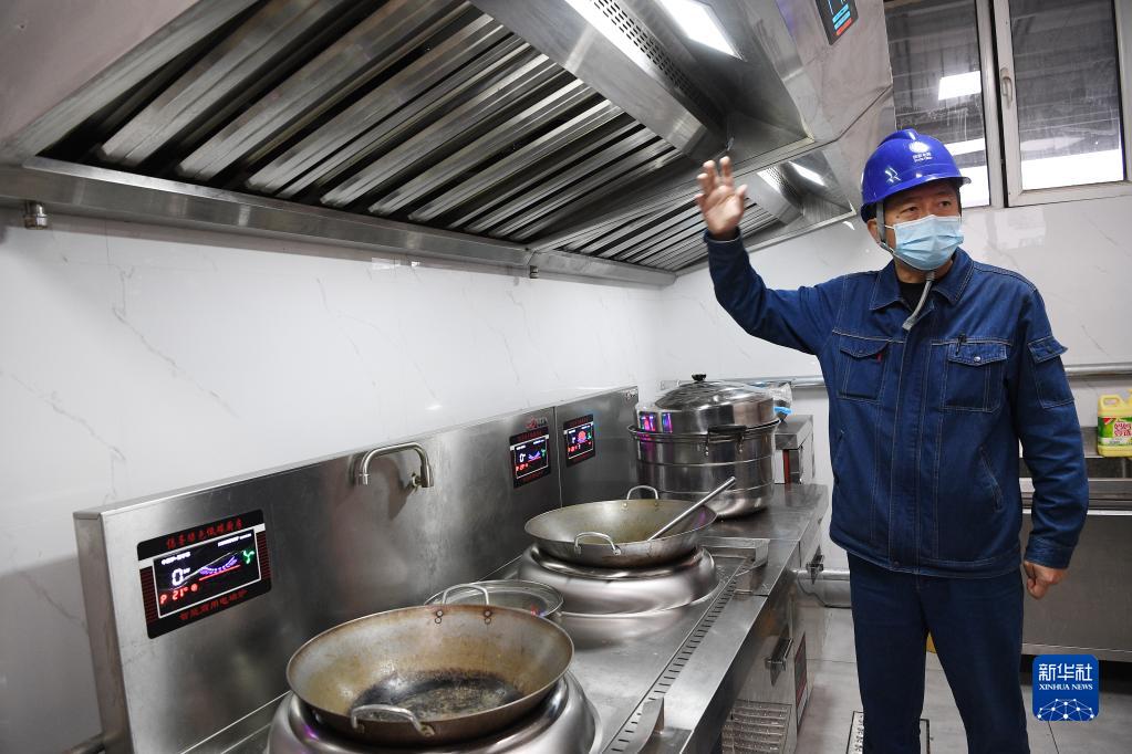 11月11日,國網寧夏電力石嘴山供電公司長勝供電所工作人員在介紹全電廚房工作原理。