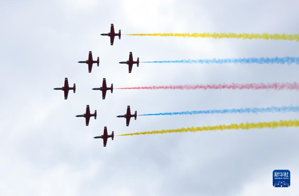 11月11日,空軍航空大學“紅鷹”飛行表演隊在第十四屆中國航展上進行飛行表演。