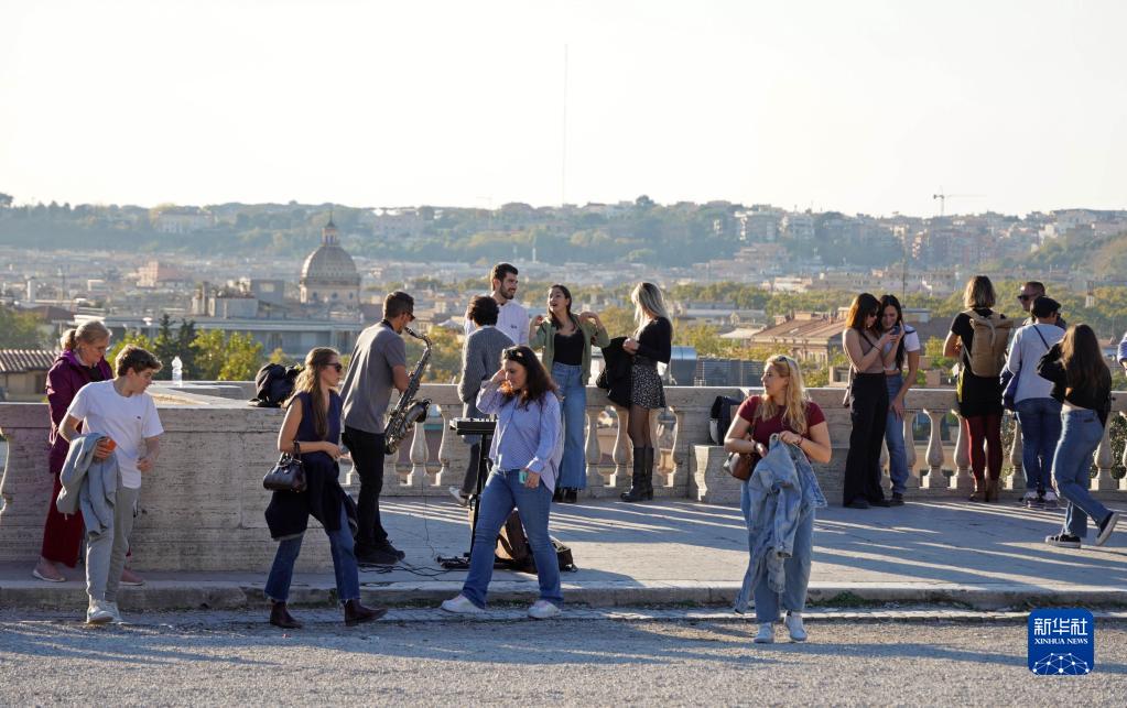 11月11日,游客聚集在意大利羅馬的蘋丘觀景臺。