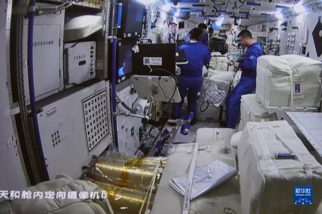 11月12日,在北京航天飛行控制中心拍攝的天舟五號貨運飛船與空間站組合體完成自主快速交會對接后天和核心艙內的情況。