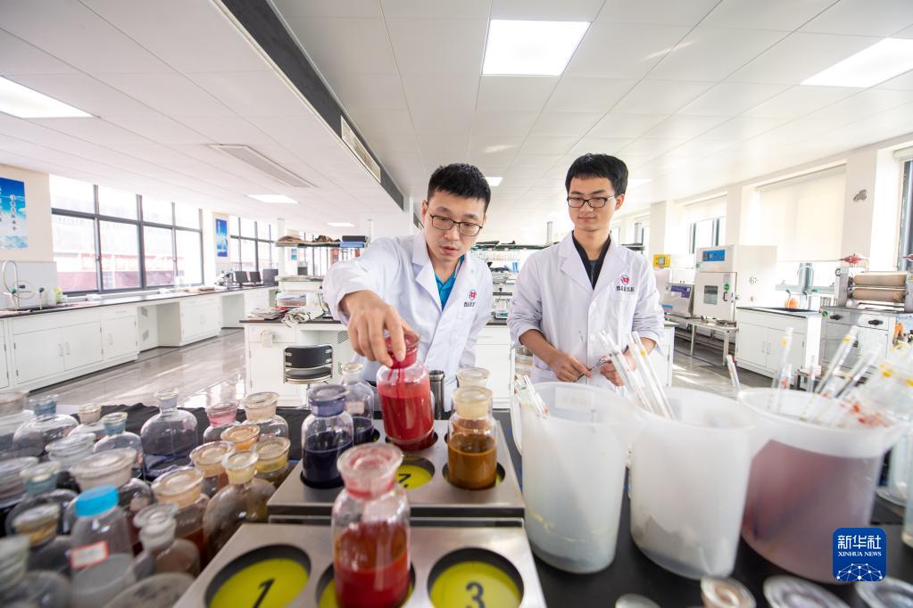 11月3日,工作人員在浙江梅盛新材料有限公司的實驗室內工作。