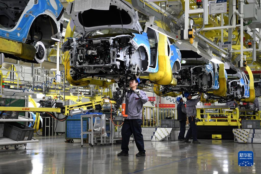 11月12日,工人在安慶一家汽車企業生產線上工作。