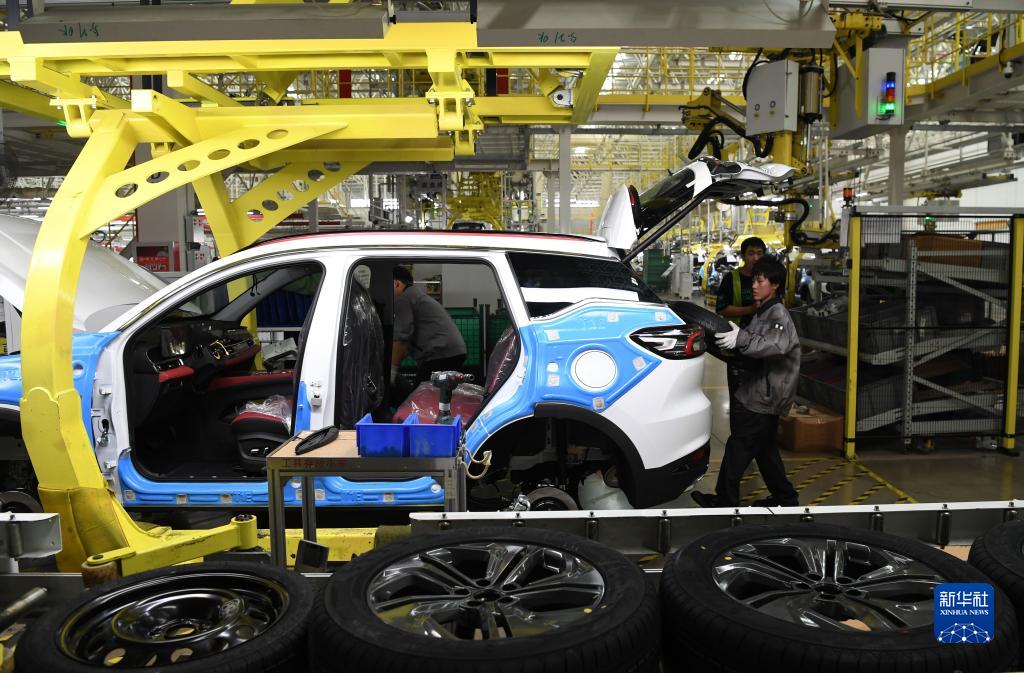 11月12日,工人在安慶一家汽車企業生產線上工作。