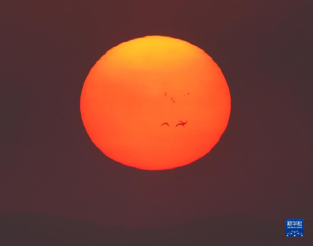 11月11日,候鳥在江西鄱陽湖南磯濕地國家級自然保護區的濕地上空飛翔。