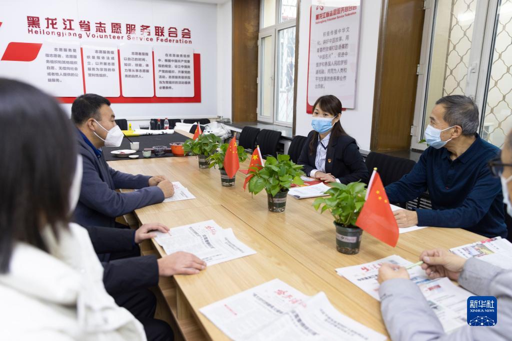 11月11日,在哈爾濱市志愿者協會辦公區,郝麗影進行宣講。