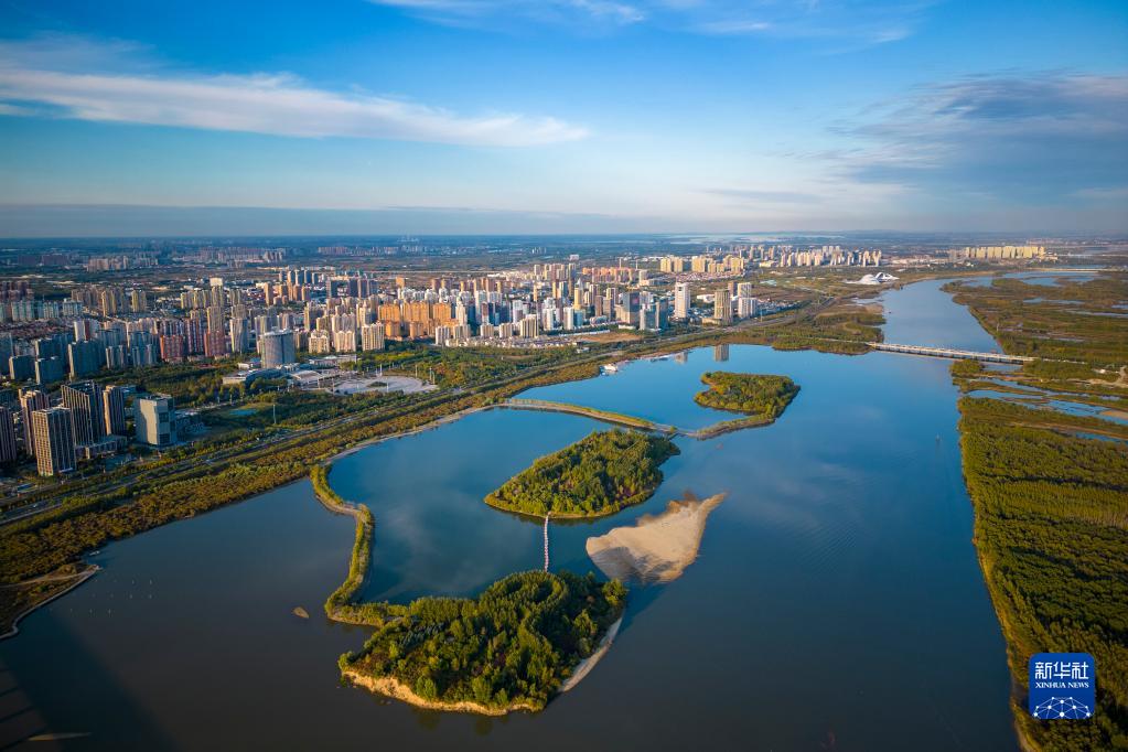 松花江上的濕地與城市景色(9月26日攝,無人機照片)。