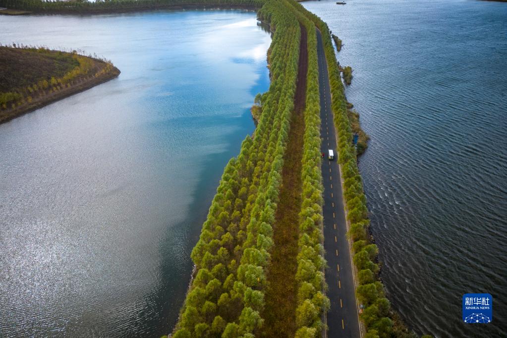 哈爾濱呼蘭河口濕地公園景色(10月4日攝,無人機照片)。