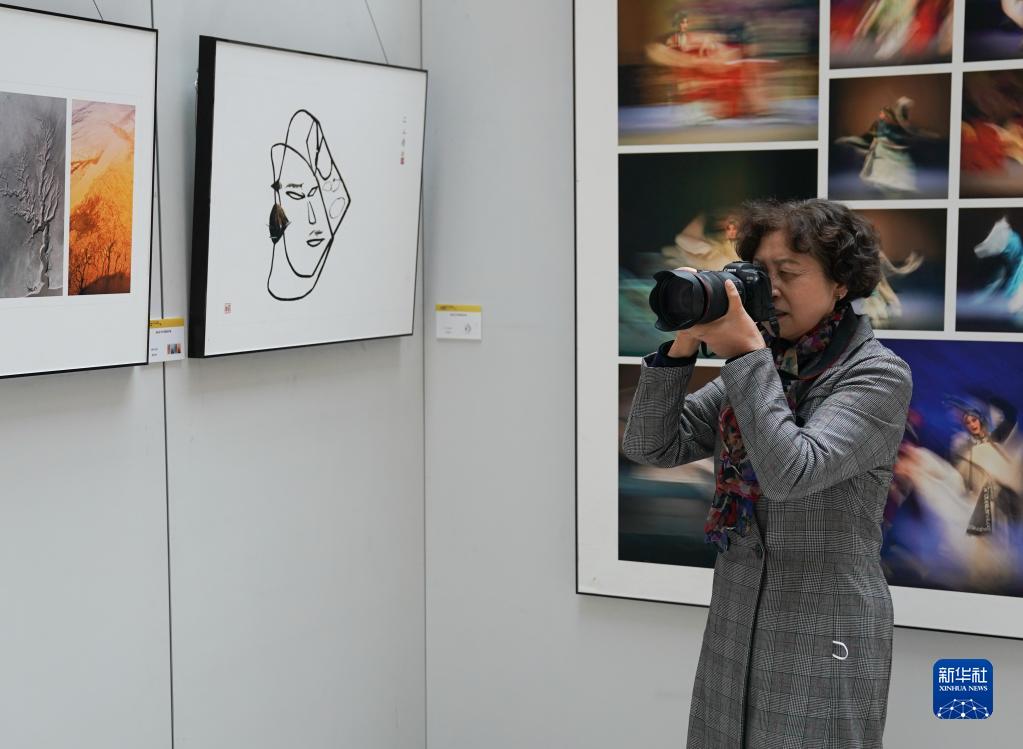 11月13日,觀眾在第三屆“郎靜山杯”中國新畫意攝影雙年展上拍照。