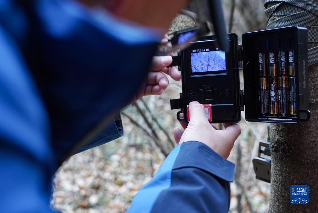 保護區工作人員檢查紅外相機的運行狀況(11月9日攝)。