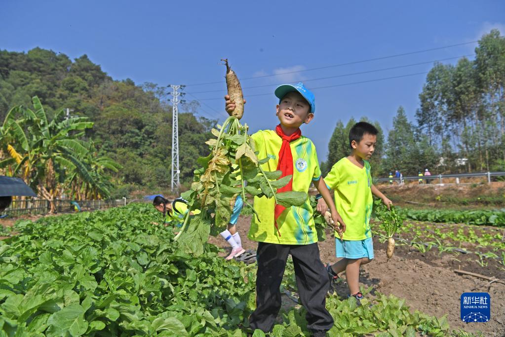 時下,廣西南寧進入收獲季節,當地一些孩子趁著周末走進田間地頭,學習農事,體驗豐收的喜悅。