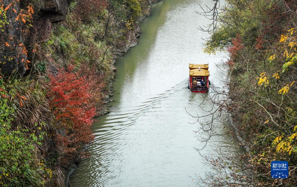 11月13日,一艘游船行駛在胭脂河上。