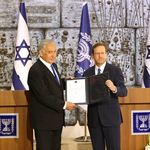 以色列總統赫爾佐格13日正式授權前總理、利庫德集團領導人內塔尼亞胡組建新政府。新華社記者 王卓倫 攝