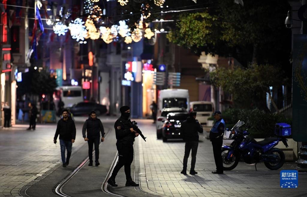 11月13日,警察在土耳其伊斯坦布爾市中心塔克西姆廣場邊上的獨立大街警戒。