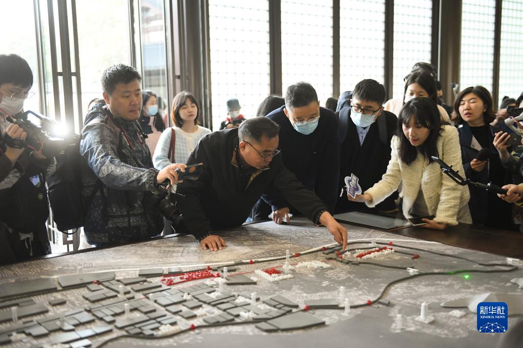 11月14日,專家向媒體記者介紹南宋臨安城布局。