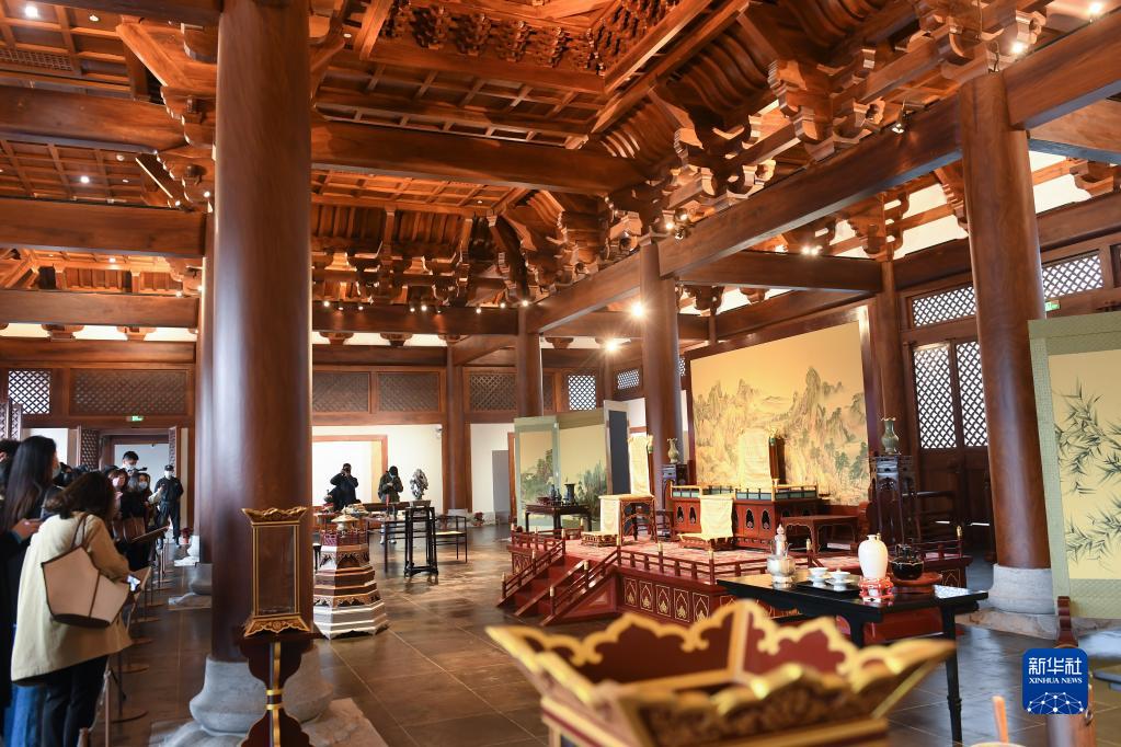 媒體記者在南宋德壽宮遺址博物館重華殿內參觀(11月14日攝)。