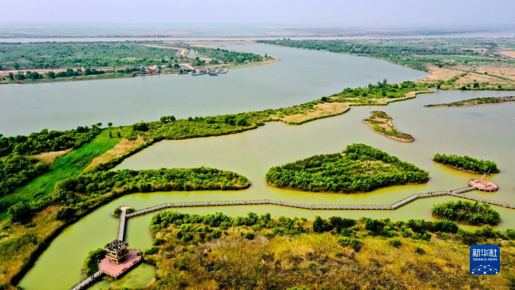 山東黃河三角洲國家級自然保護區景色(2021年5月13日攝,無人機照片)。
