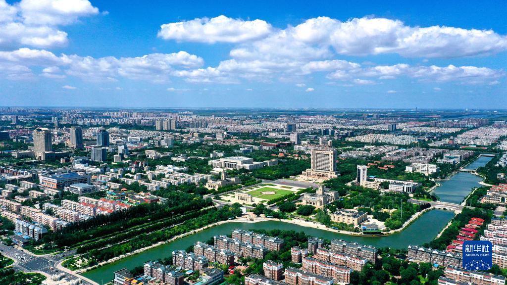 東營市城市景色一角(2020年8月21日攝,無人機照片)。