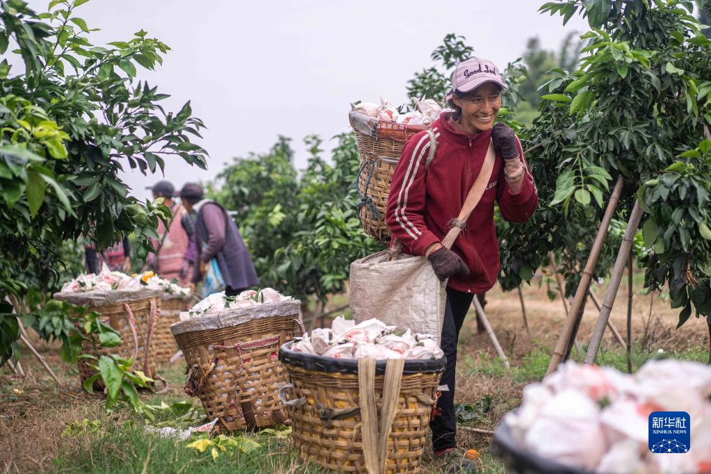 11月14日,四川省眉山市彭山區謝家街道悅園村,果農在采摘裝運愛媛橙。