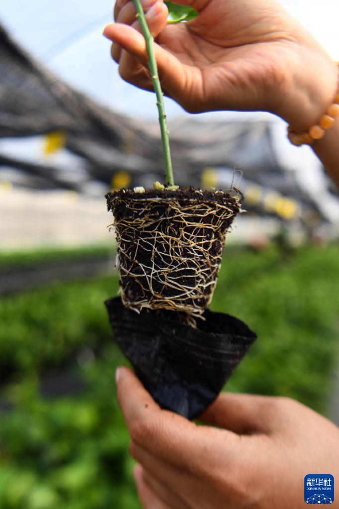 這是“黃金百香果”種苗培育基地培植的“黃金百香果”種苗根系(11月10日攝)。