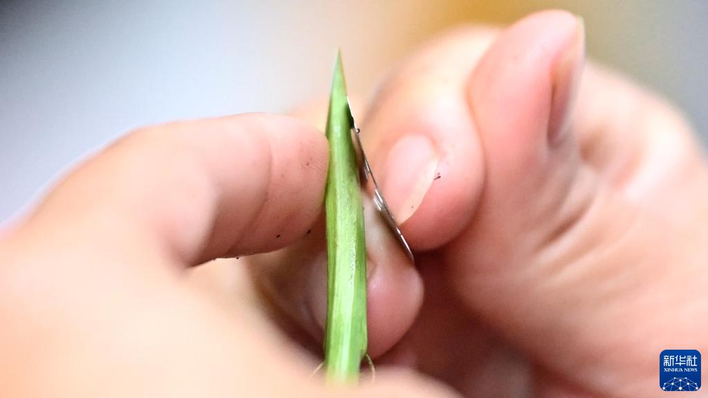 在“黃金百香果”種苗培育基地,一名工人在削枝嫁接“黃金百香果”種苗(11月10日攝)。