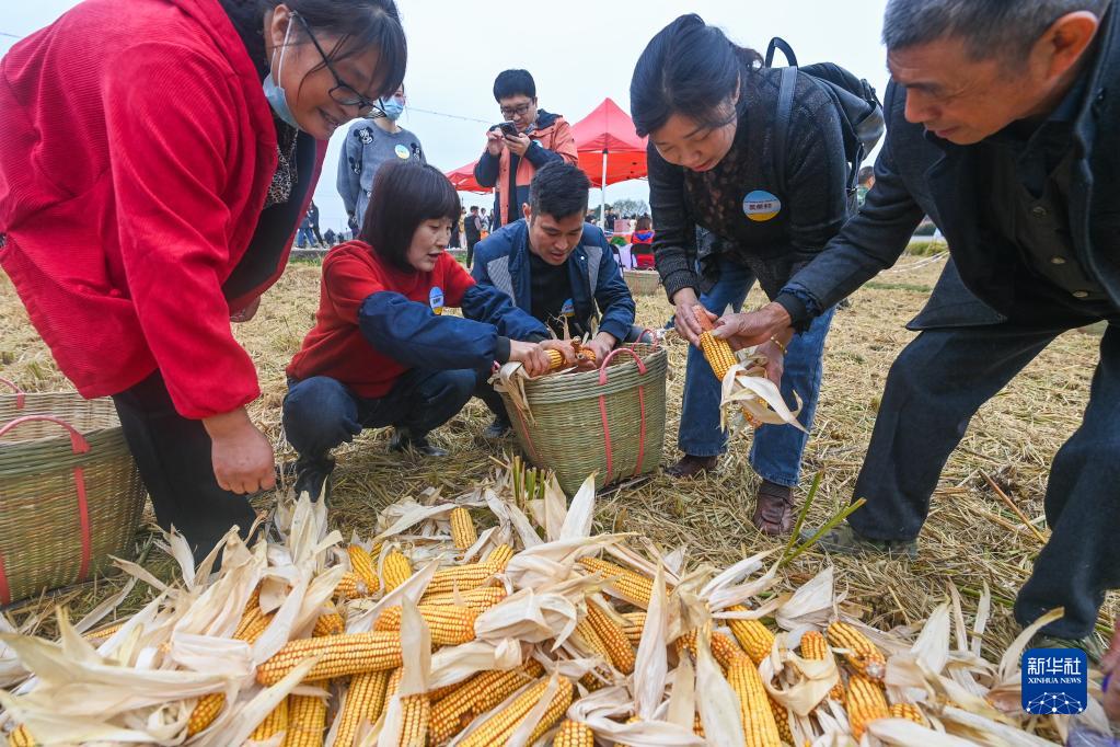 11月15日,參賽村民參加“剝玉米”趣味比賽。