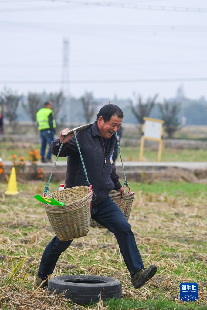 當日,浙江省杭州市余杭區瓶窯鎮13個村的近200位“勞動能手”齊聚瓶窯鎮西安寺村,參加農民豐收趣味運動會,包括扁擔挑糧、割稻谷、搶收土豆、剝玉米、運水抗旱等多個特色比賽項目。